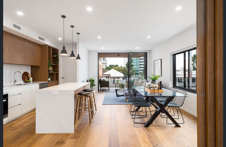 Working closely with Husband Architects, the Cheval development includes 2 commercial tenancies to ground floor, communal recreation space, three levels of apartments (12 total) and one penthouse on the fifth level, allowing the building structure to step back at its peak.